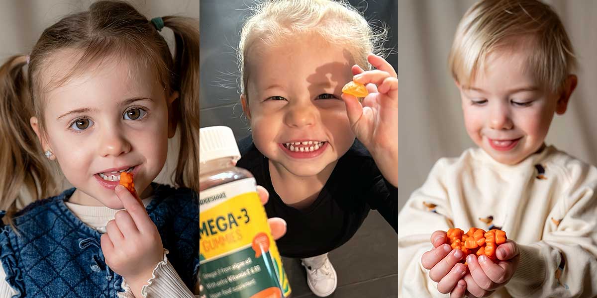 "Super makkelijk om zo omega 3 te geven! Geen gedoe meer met siroop of capsules. Kids vinden geur & smaak lekker. Ik neem ze stiekem ook 😄" —Marleen